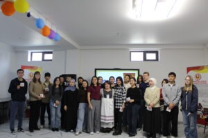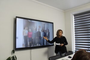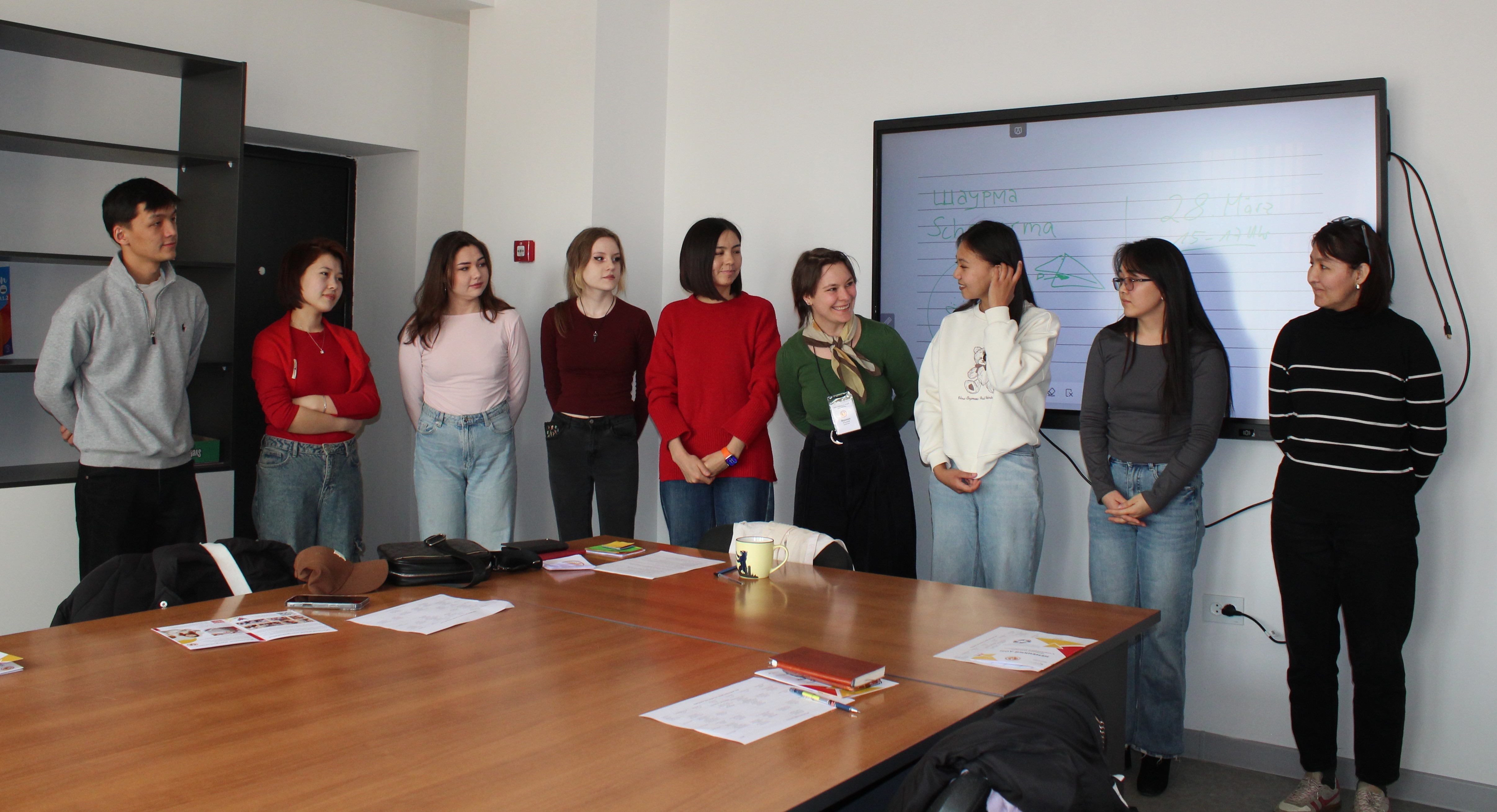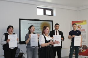 Координатор по молодежной работе Диана Дворянинова провела интерактивную презентацию молодежных проектов. Она подробно рассказала о мероприятиях для молодежи, кружках, воркшопах и семинарах, которые проводятся как в Бишкеке, так и в других регионах страны. Эта деятельность направлена на развитие самых разных навыков у молодежи и получение знаний. Благодаря интерактивным играм и интересной подаче, гости не просто слушали презентацию, а сами приняли участие в ней. Так они на себе почувствовали взаимодействие с коллективом, совместную работу и проявили свои способности.