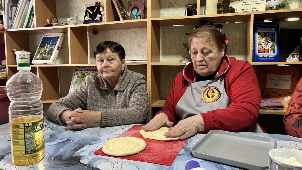 Jeden Mittwoch treffen sich die Kursteilnehmer in der Begegnungsstätte im Dorf Belovodskoje zu einem Kochclub, wo sie traditionelle Gerichte der Wolgadeutschen kennenlernen und zubereiten.