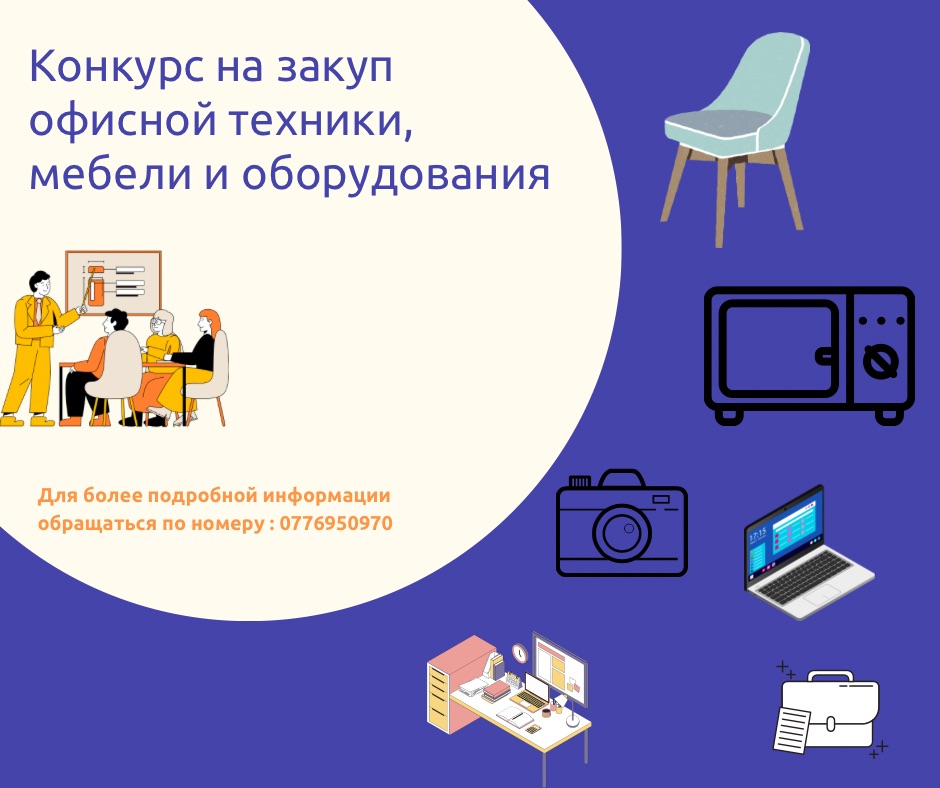 Es wird eine Ausschreibung für den Kauf von Bürotechnik, Möbeln und Geräten veröffentlicht. Nämlich