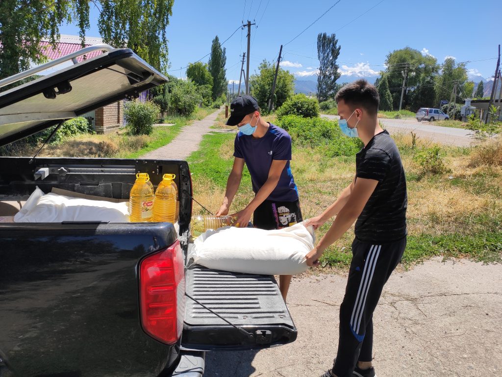 533 Begünstigte benachbarter Regionen (Bischkek und Alamudun Distrikt, Sokuluk und Sokuluk Distrikt, Belovodskoye und Moskau Distrikt, Kara-Balta, Zhayilsky und Panfilovsky Distrikt, Kant und Issyk-Ata Distrikt, Chui-Tokmok) erhalten Lebensmittelpakete (25 kg. Mehl und 5 l. Pflanzenöl).