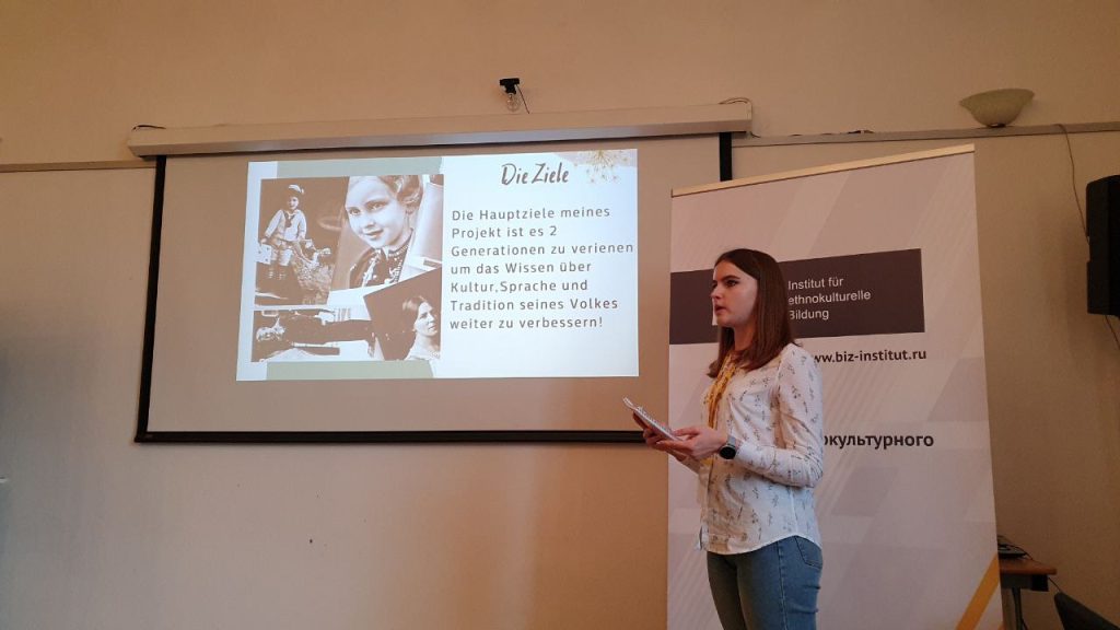 Neben dem Deutschunterricht gab es auch Einführungstage, an denen wir die Aktivitäten des RND (Russisch-Deutsches Haus) und des TORN ( Kreativer Verein der Russlanddeutschen) näher kennenlernten. Weitere Informationen finden Sie auf der Website https://rusdeutsch.ru/. Am Ende des Unterrichts musste jeder Teilnehmer selbstständig das Projekt auf Deutsch verteidigen. Dies war das Hauptziel dieses Seminars. Mein Projekt heißt „Wiedergeburt“, dessen Aufgabe es ist, zwei Generationen zu vereinen, um Muttersprache, Geschichte und Traditionen zu lernen. Am Ende des Workshops erhielten alle Teilnehmer Zertifikate. Ich möchte der Vereinigung der Russlanddeutschen Kirgisistans für die Möglichkeit, an einem internationalen Projekt teilzunehmen und neue Erkenntnisse zu gewinnen, großen Dank aussprechen.