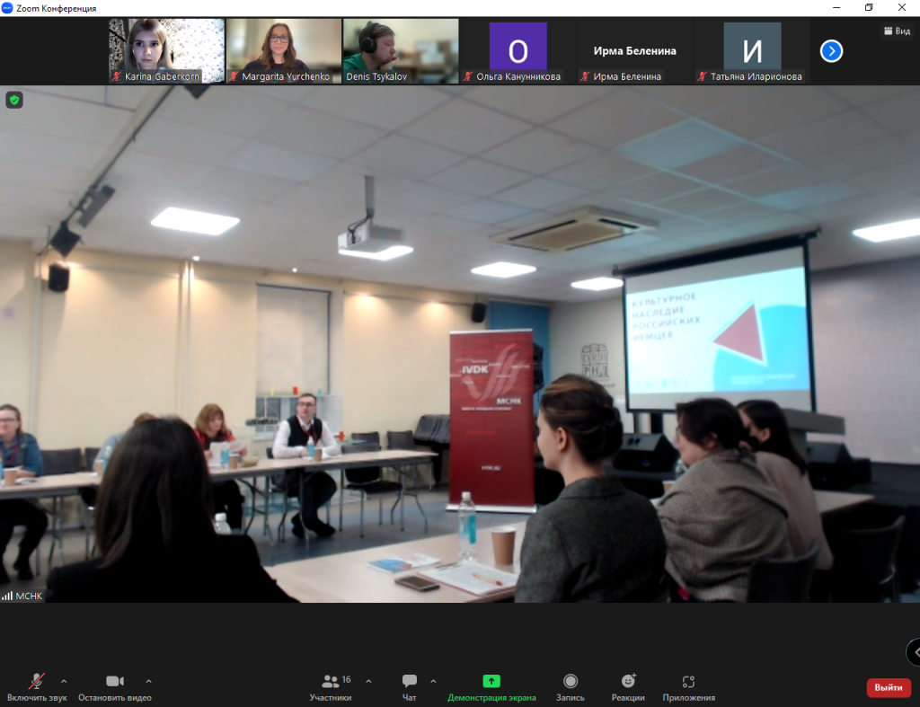 Die Vertreterin des Kirgisisch-Deutschen Hauses Karina Gaberkorn sprach am zweiten Tag mit einem Bericht: „Die Rolle der Augenzeugengeneration bei der Weitergabe des ethnokulturellen Codes der deutschen Jugend in Kirgisistan.“ Sie sprach über die Geschichte der deutschen Siedler in Zentralasien undeinbezogdas Publikum in einen historischen Kontext. Sie gab Daten aus einer soziologischen Studie zum Studium der deutschen Sprache durch die Generation der Augenzeugen, ihrer Kinder und Enkelkinder an. Sie ging auch auf die Veranstaltungen der Leiterin der Bischkeker Begegnungsstätte Natalya Dvoryaninova und der Koordinatorin der ethnokulturellen Arbeit Margarita Kopteva im Kirgisisch-Deutschen Haus in Bischkek ein.