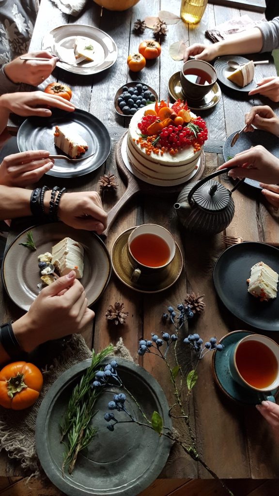 Im Kalender des Deutschen Humanitären Hilfsfonds sind Geschichten über Familientraditionen der Deutschen in Kirgisistan gesammelt, die von Generation zu Generation weitergegeben werden. Eine dieser Geschichten erzählt von der Bedeutung gemeinsamer Mahlzeiten und der Bewahrung der Kultur durch Kommunikation und Musik.