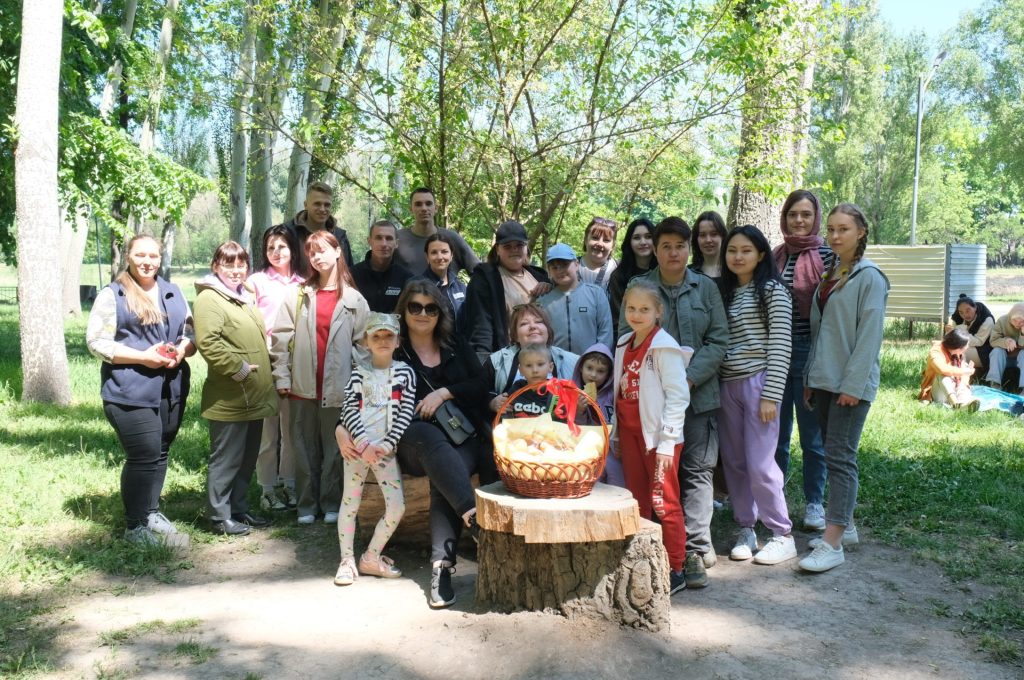 Мероприятие было решено проводить в парке «Карагачевая роща». Там много деревьев и зеленых полян, а главное свежий воздух. Когда все участники были в сборе, Канымжан Балгарбекова вместе с Изабель Роске предложили поиграть в игры на немецком языке. Молодежь и взрослые с интересом вспоминали слова, подбирали синонимы и ассоциации. Затем к ним присоединились Наталья Дворянинова и Дарья Алешко. Они рассказали правила квеста, после чего участники принялись его проходить. Они ходили по всему парку и искали записки с загадками. Первые четыре загадки им дались очень легко, ребята привыкли искать их где-то внизу или под ногами, и совсем не ожидали, что пятая будет спрятана в ветвях ивы. Когда им попалось задание с картой, ребята разделились. Молодежь и подростки сразу принялись искать следующую подсказку, а участники постарше решили изучить карту повнимательнее. Это и помогло им быстрее отыскать приз. Они вышли к скамейке и столу из срубов дерева, где их ждала огромная корзина с берлинерами. Наталья Дворянинова отметила, как важно читать задания внимательнее и сообща искать ответы. Они дождались остальных участников и только потом приступили к чаепитию с выпечкой.