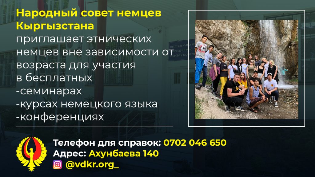 Друзья, Народный Совет Немцев Кыргызской Республике приглашает всех этнических немцев вне зависимости от возрастной категории принимать участие в жизни нашего общества!
